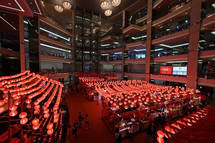 People visit a shopping mall decorated with lanterns ahead of the Lunar New Year in Jakarta on January 30, 2022, which ushers in the Year of the Tiger on February 1. (Photo by ADEK BERRY / AFP)