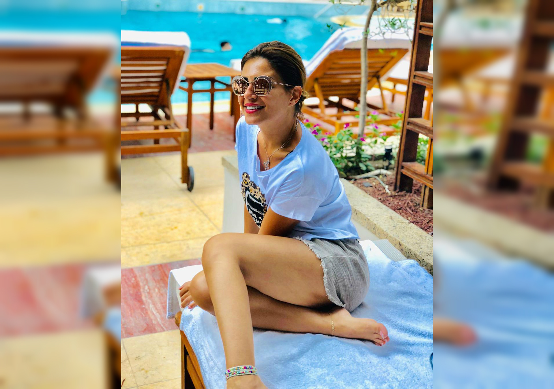 Menna enjoying her time by the pool side source @manoushafadali instagram