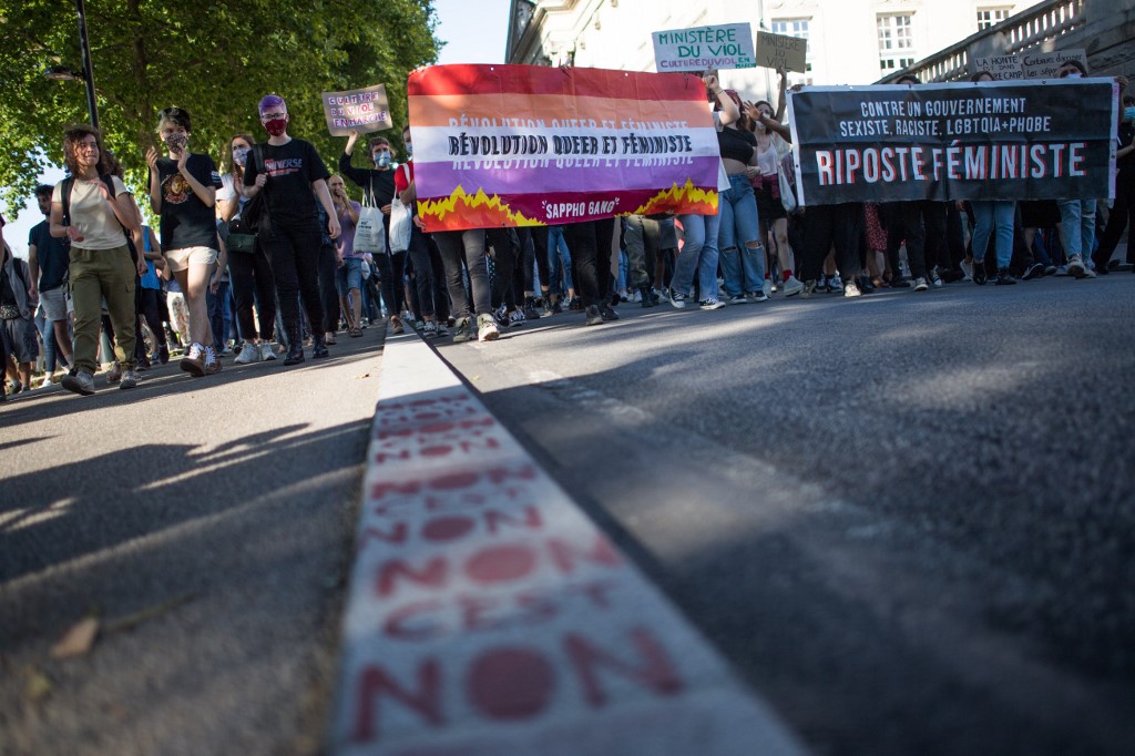 The protesters rallied in Paris, Bordeaux, Lyon, Toulouse and other cities with slogans denouncing "the culture of rape On the Move" a reference to the name of President Emmanuel Macron's ruling party The Republic on the Move (LREM).