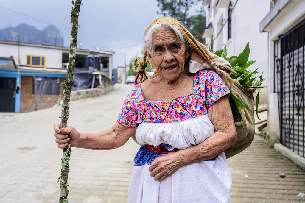 Mexican artisan of the Otomi ethnic group Josefina Jose Tavera, 87, walks in San Nicolas Village, in Tenango de Doria, Hidalgo state, Mexico. Pedro PARDO / AFP