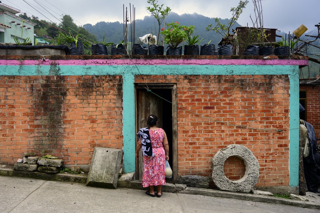 Mexican artisan Glafira Candelaria Jose, 59, of the Otomi ethnic group, stands outside her house in San Nicolas Village, in Tenango de Doria, Hidalgo state, Mexico. Pedro PARDO / AFP