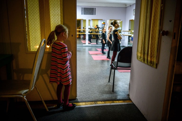 In a small studio in northern Moscow, parents and grandparents sit in a corridor waiting for children as young as three to finish their ballet class.