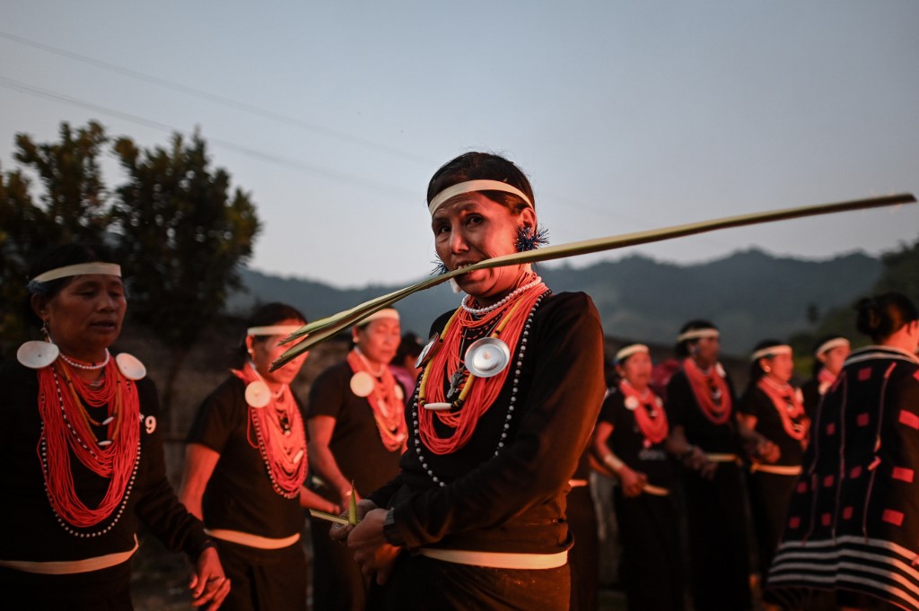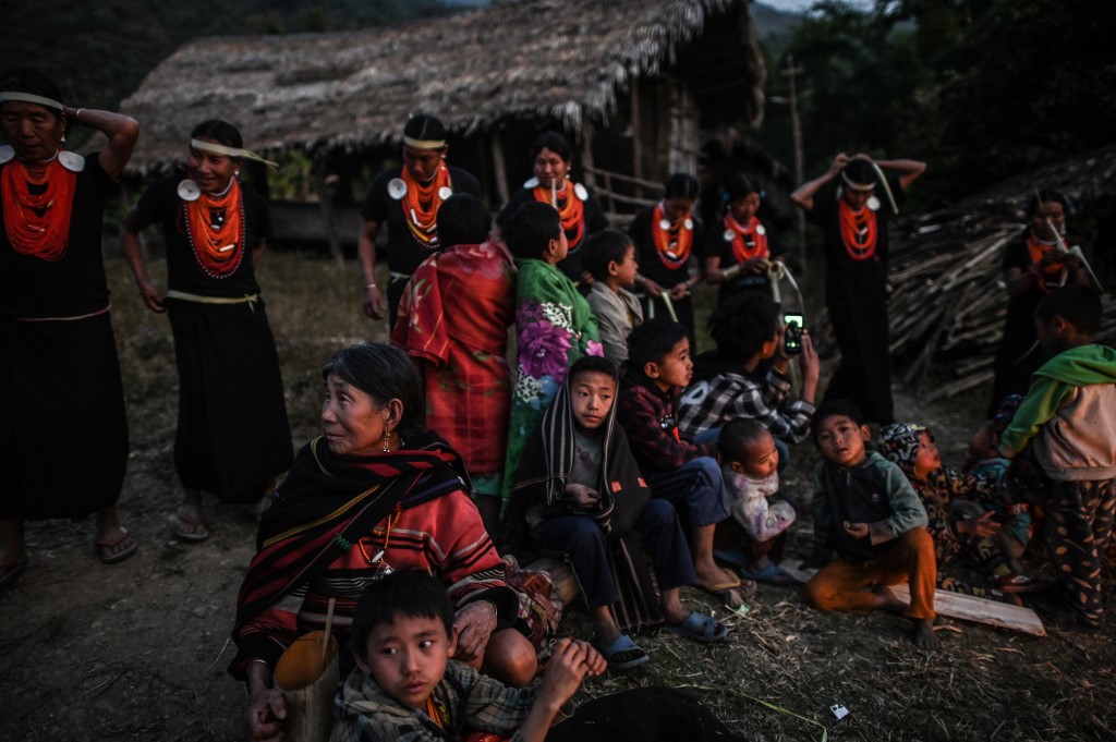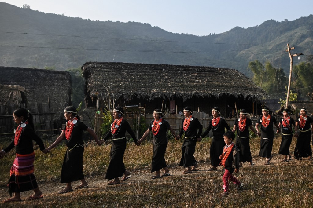 Dressed in black and wearing orange bead necklaces and palm leaf headbands, they rotate around a fire in Satpalaw Shaung village, hands held tightly and braving the cold with bare arms, according to AFP.