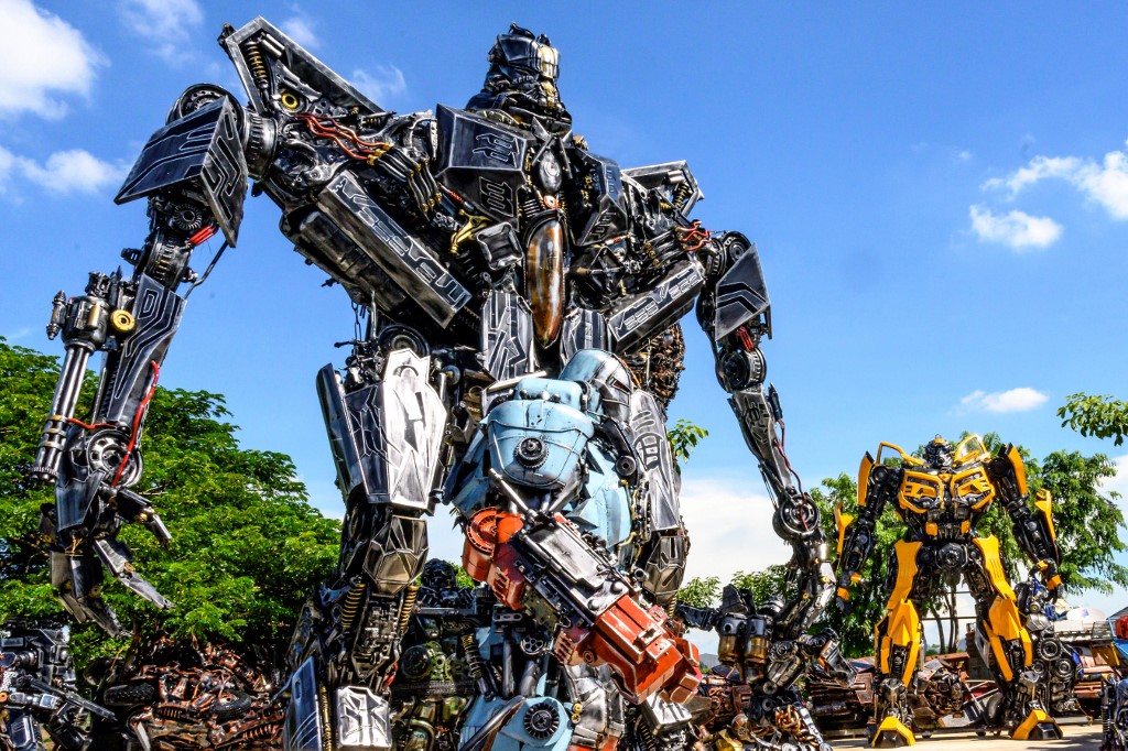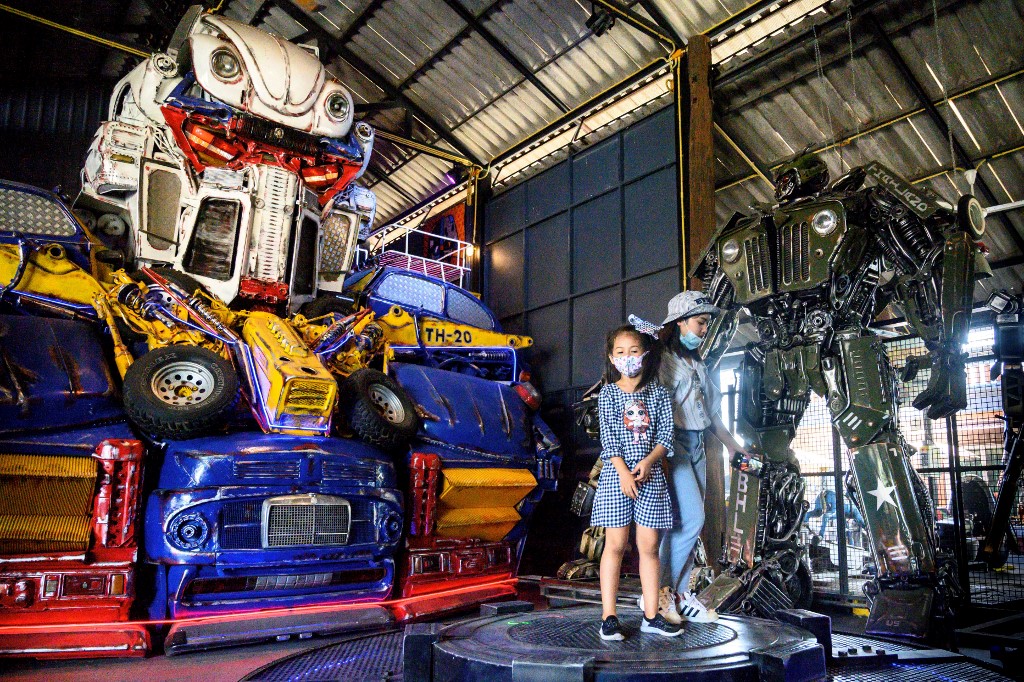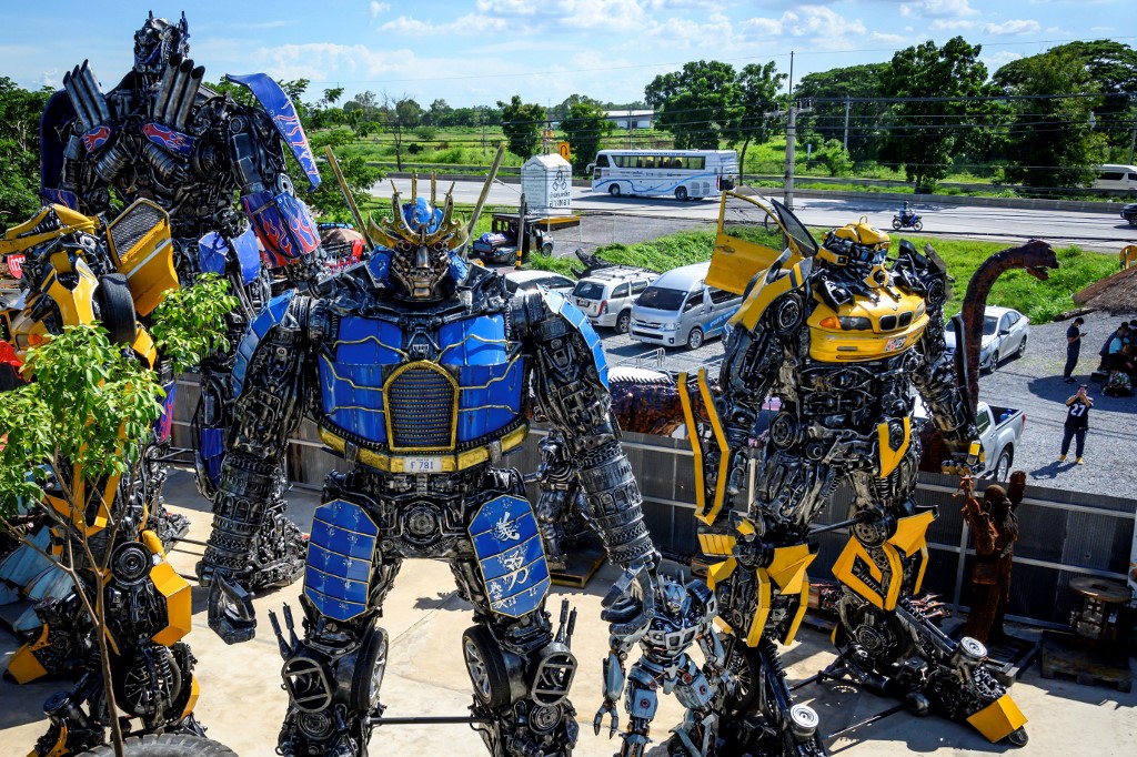 Visitors to Phairote Thanomwong's welding workshop gaze up at eight-metre-high sculptures modelled after the robots of the Transformers franchise and a jet-black King Kong hewn together from old car parts.