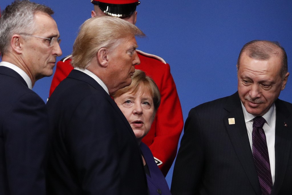 Nato heads of government (front row L-R): Canada's Prime Minister Justin Trudeau, Bulgaria's President Rumen Radev, Belgium's Prime Minister Sophie Wilmes, Albania's Prime Minister Edi Rama, Britain's Prime Minister Boris Johnson, NATO Secretary General Jens Stoltenberg, US President Donald Trump, Turkey's President Recep Tayyip Erdogan, Spain's Prime Minister Pedro Sanchez, Slovenia's Prime Minister Marjan Sarec, (middle row L-R) Croatia's Prime Minister Andrej Plenkovic, Denmark's Prime Minister Mette Frederiksen, Estonia's Prime Minister Juri Ratas, France's President Emmanuel Macron, German Chancellor Angela Merkel, Greek Prime Minister Kyriakos Mitsotakis, Hungary's Prime Minister Viktor Orban, Iceland's Prime Minister Katrin Jakobsdottir, Italy's Prime Minister Giuseppe Conte, (top row L-R) Lithuania's President Gitanas Nauseda, Luxembourg's Prime Minister Xavier Bettel, Montenegro's Prime Minister Dusko Markovic, Netherland's Prime Minister Mark Rutte, Norway's Prime Minister Erna Solberg, Lithuania's