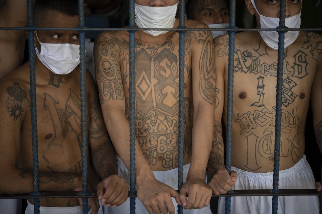 Members of the MS-13 and 18 gangs were packed into overcrowded cells  at three prisons in El Salvador.