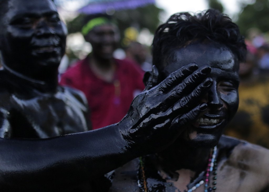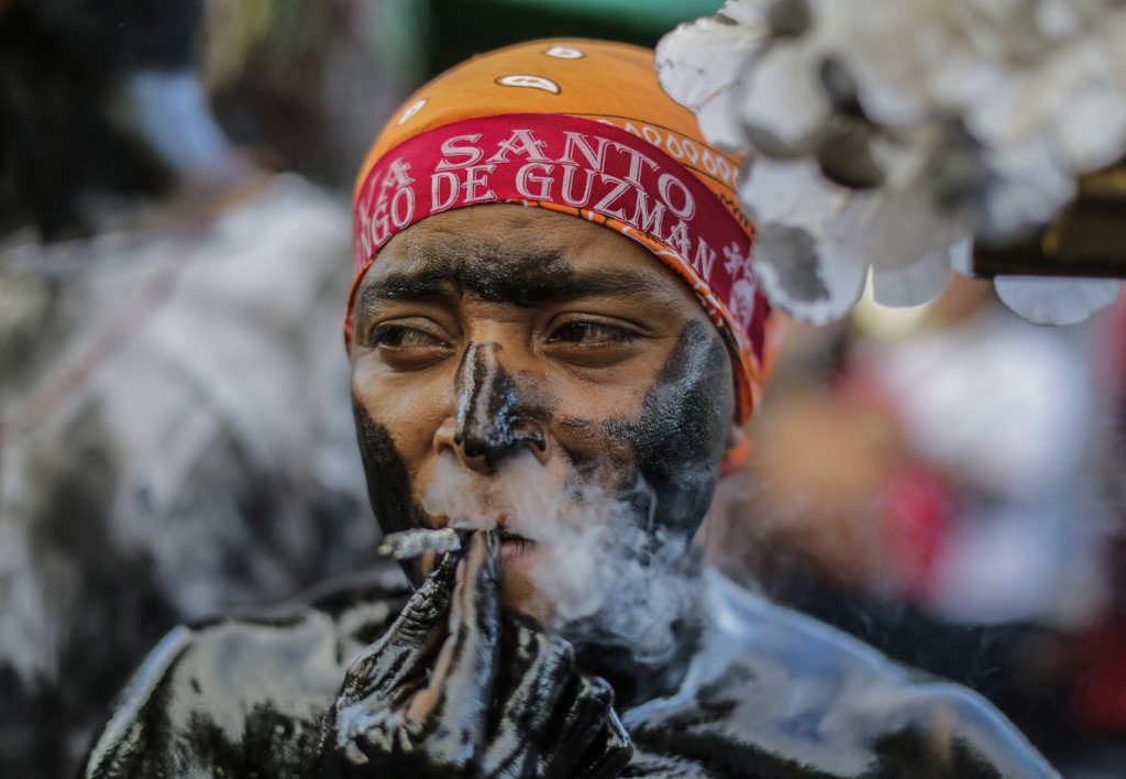 Catholic faithful smeared in burnt oil, take part in the opening of the ten-day celebration of the Santo Domingo de Guzman festival in Managua, on August 1, 2019.  INTI OCON / AFP