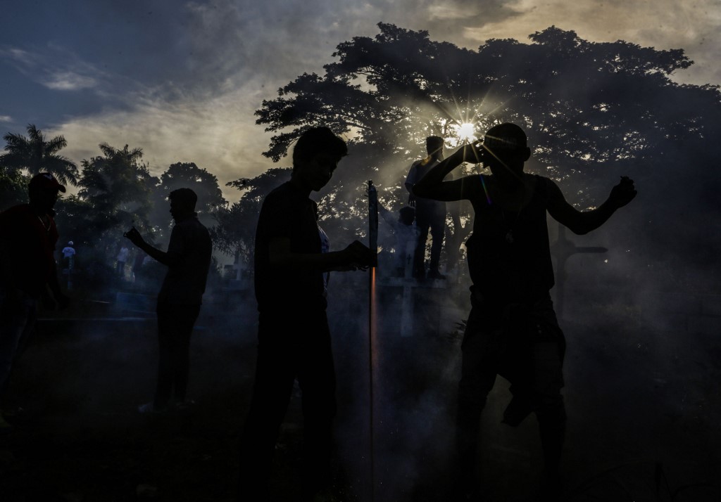 Catholic faithful light fireworks, during the opening of the ten-day celebration of the Santo Domingo de Guzman festival in Managua, on August 1, 2019. INTI OCON / AFP
