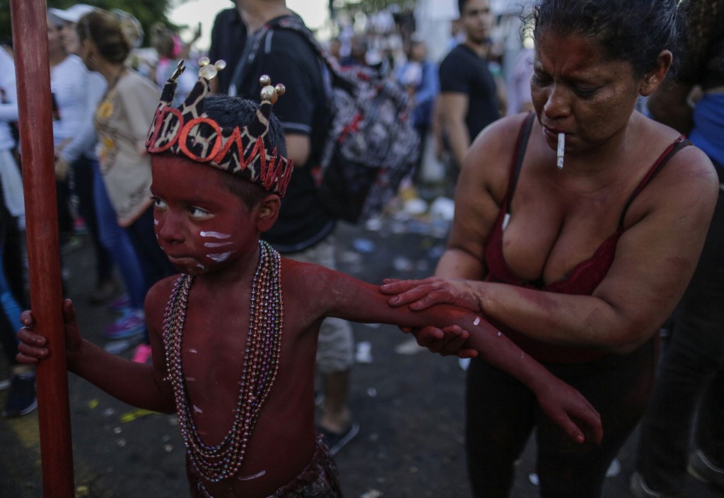 Catholic faithful children smeared in floor painture take part in the opening of the ten-day celebration of the Santo Domingo de Guzman festival in Managua, on August 1, 2019.  INTI OCON / AFP