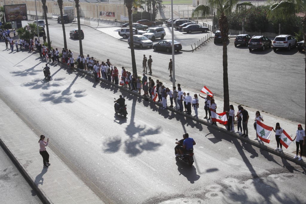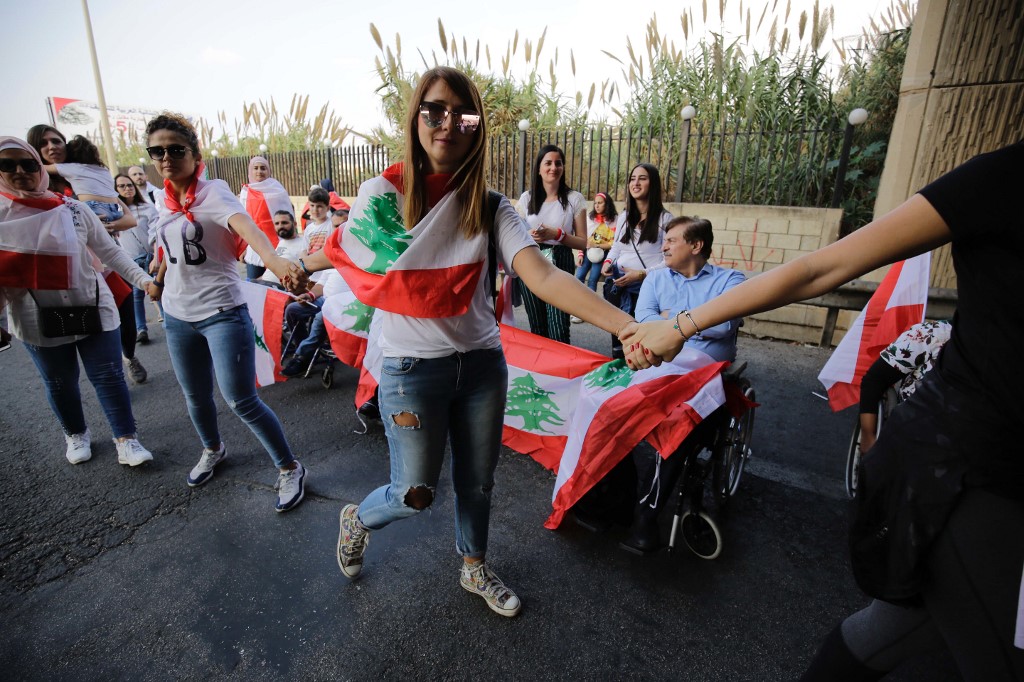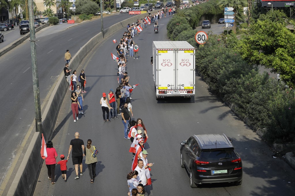 People joined hands from Tripoli to Tyre, a 170-kilometre of human chain running through the main protest hub in the capital, Beirut.