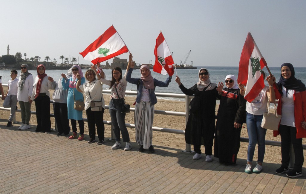 Tens of thousands of Lebanese Protesters cross hands on Sunday, October 27th to create a human chain connected the country's north and south.