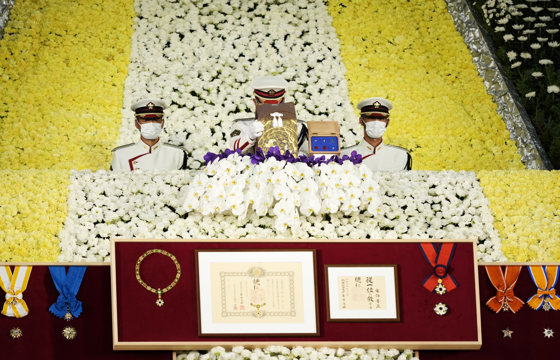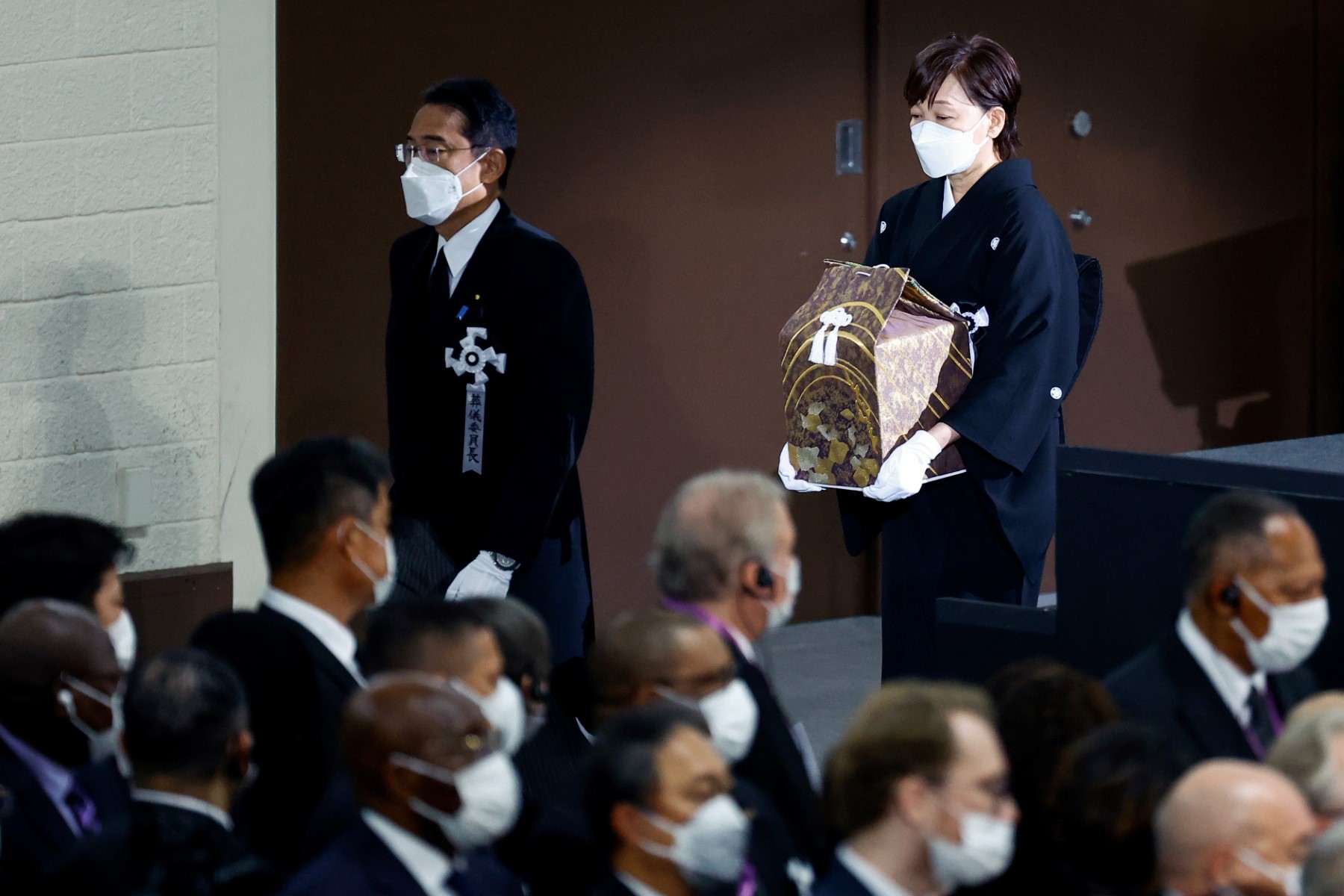 Ex-PM Abe's ashes was carried by his widow Akie through the storied Budokan venue in Tokyo, where a 19-gun salute sounded in honor of the slain former leader.