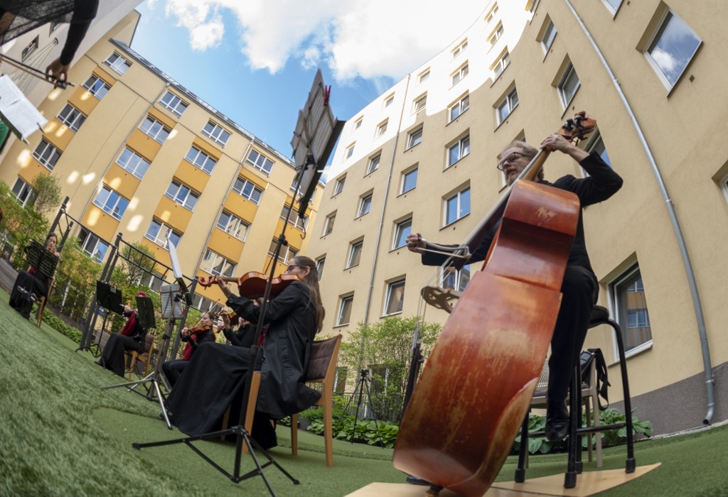 Deserted by tourists, a hotel in Vienna gave itself a temporary one-night-only makeover, turning itself into an outdoor concert hall.