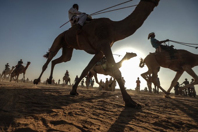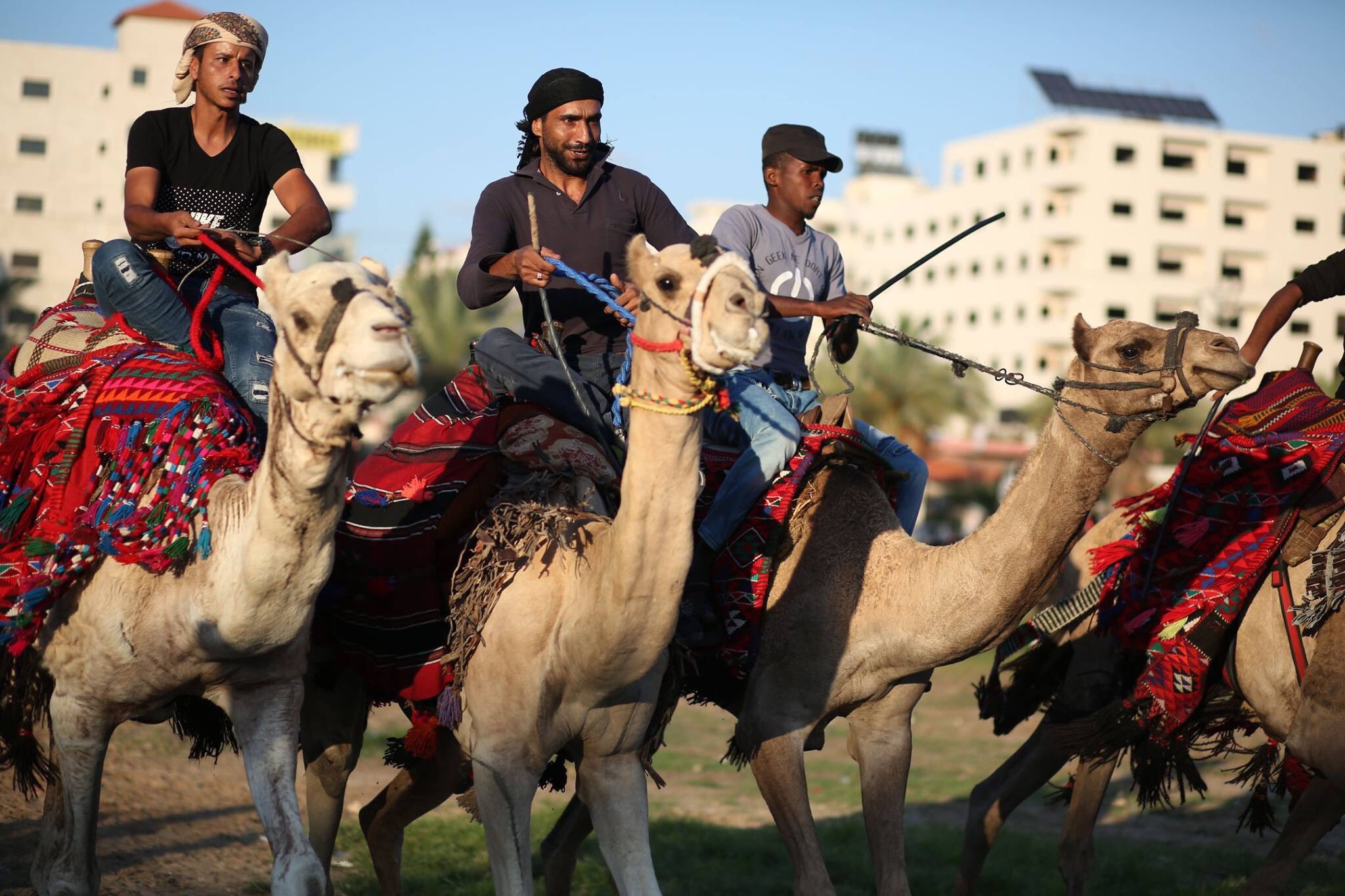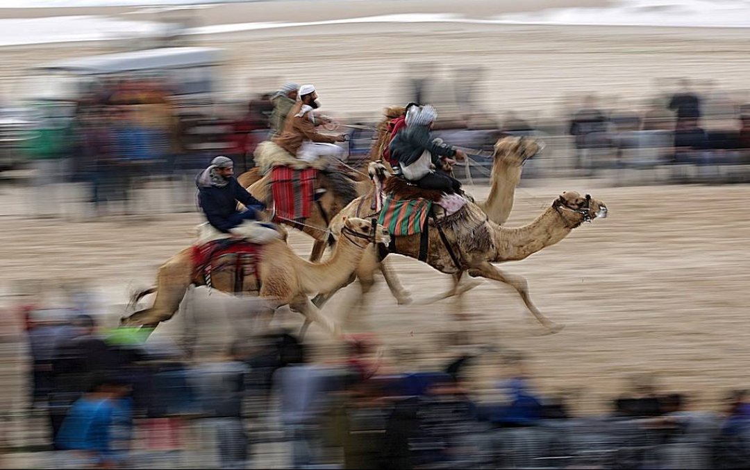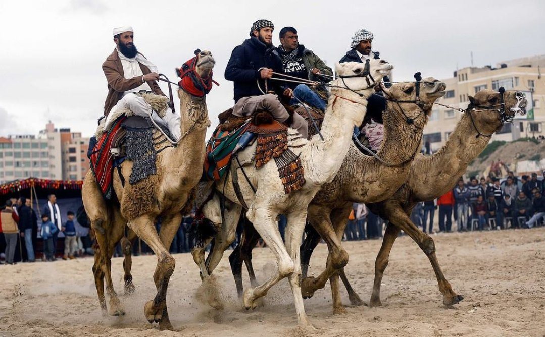 Bedouin youths ride their camels during a race in Gaza (Twitter)