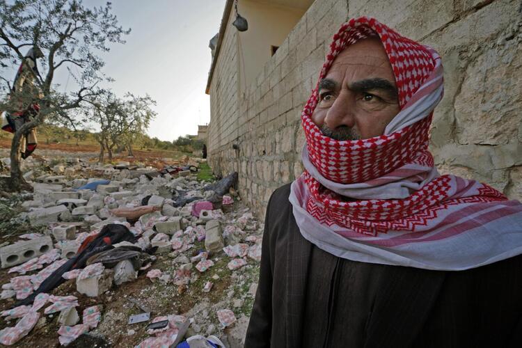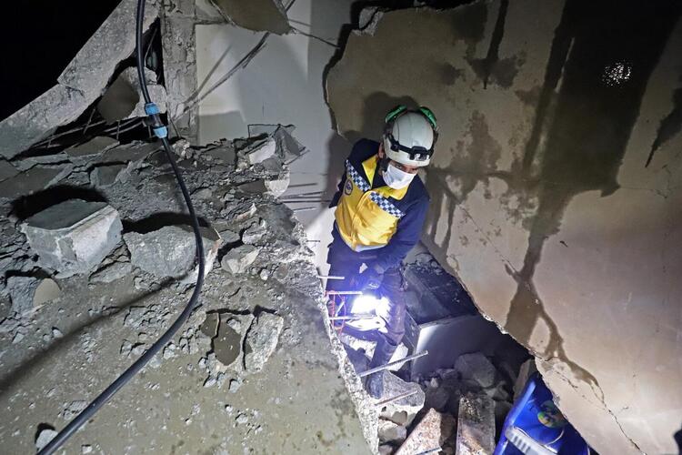 EDITORS NOTE: Graphic content / Syrian civil defence search on February 3, 2022 the scene following an overnight raid by US special operations forces against suspected jihadists in Atme, in Syria's northwestern province of Idlib which left at least nine people dead, including three civilians. (Photo by Abdulaziz KETAZ / AFP)
