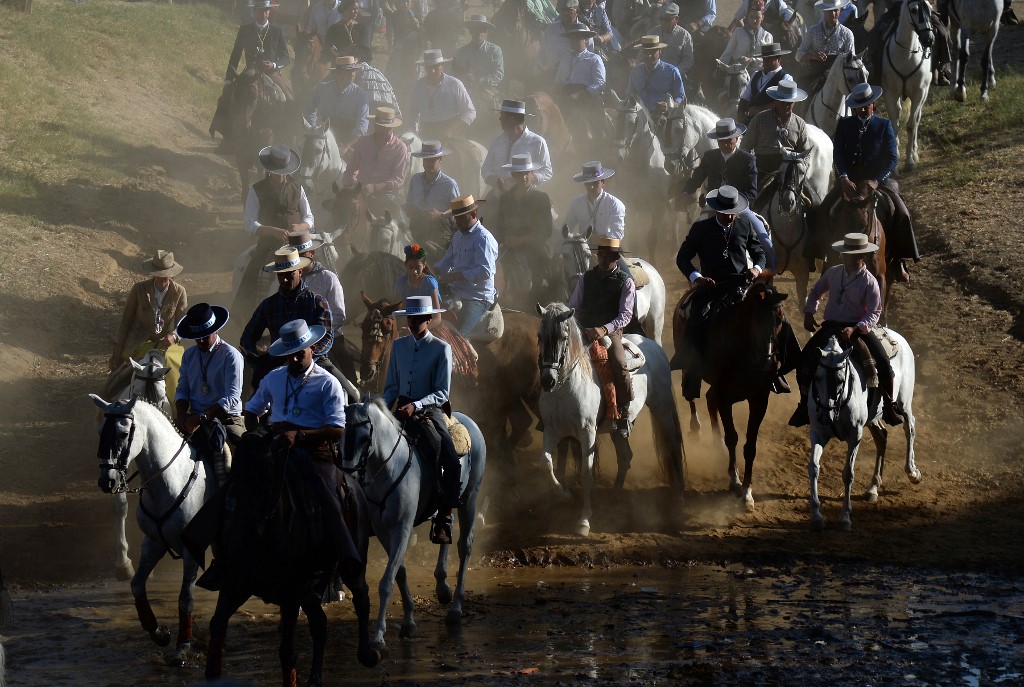 El Rocio pilgrimage, the largest in Spain, gathers hundreds of thousands of devotees in traditional outfits converging in a burst of colour as they make their way on horseback and on board decorated carriages across the Andalusian countryside.