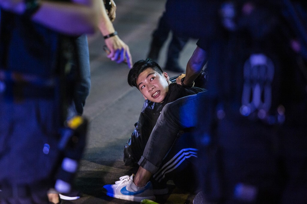 Police detain a group of people during a pro-democracy protest calling for the city's independence in Hong Kong on May 10, 2020. ISAAC LAWRENCE / AFP