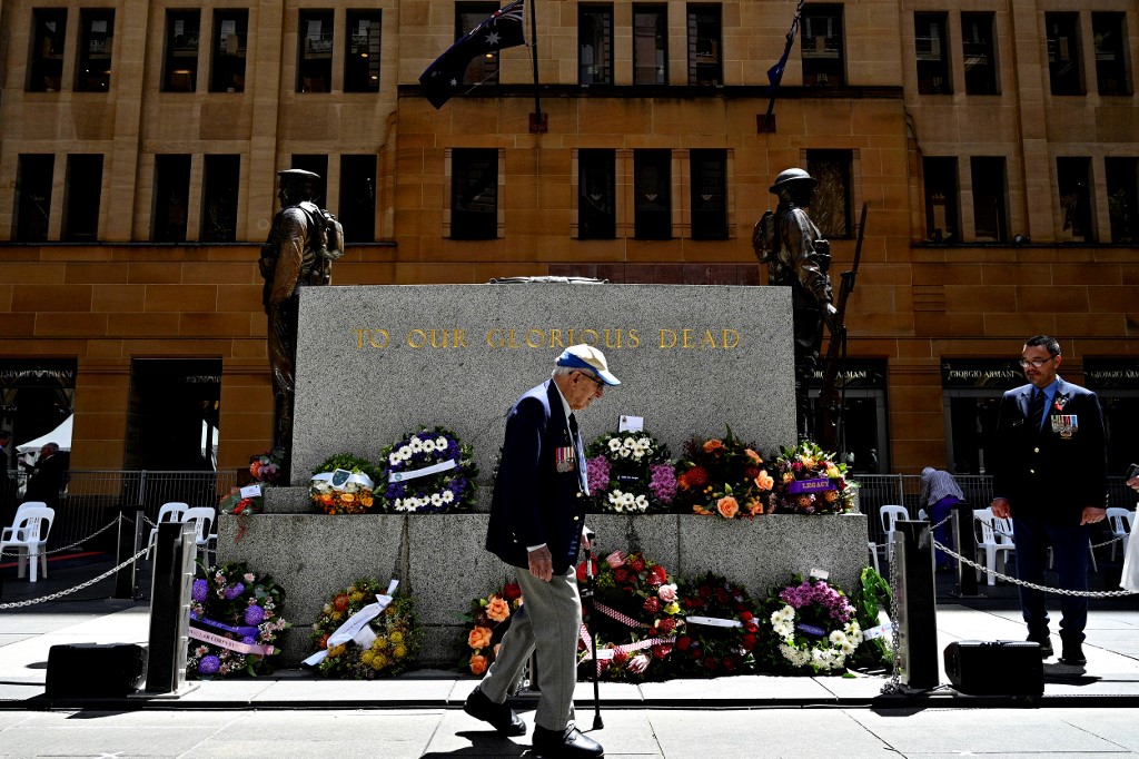An elderly man walks past The Cenotaph monument after the Remembrance Day Service to mark the anniversary of the end of World War I, at Martin Place in Sydney on November 11, 2020. Saeed KHAN / POOL / AFP
