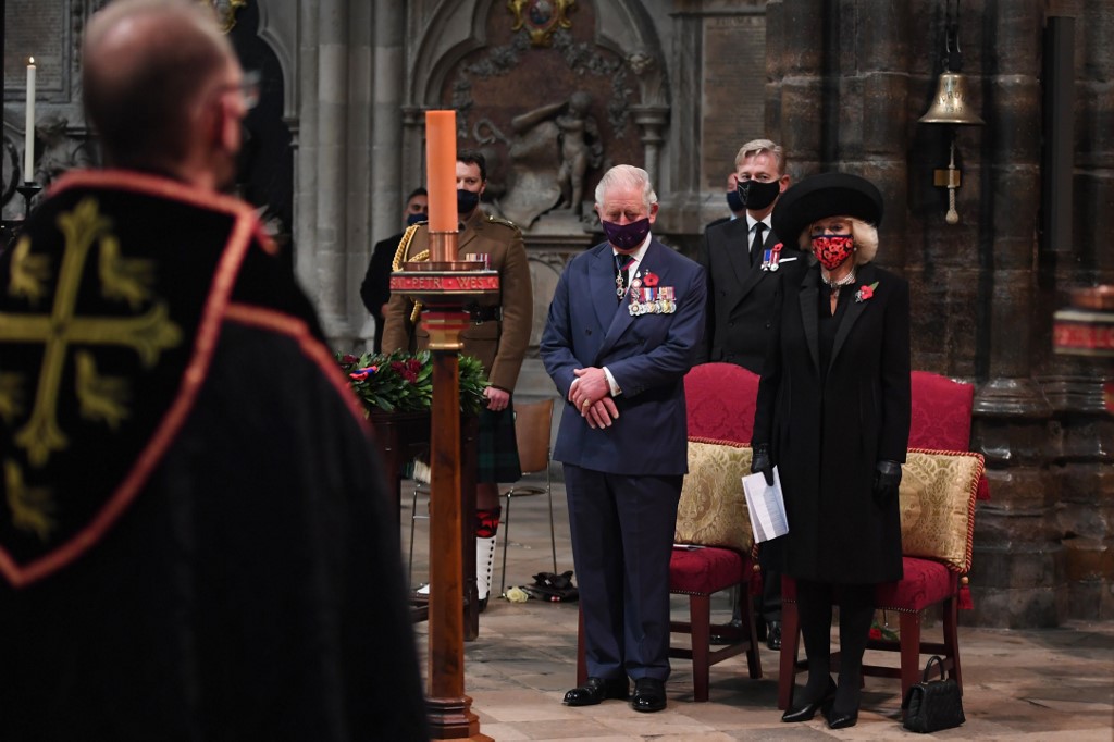Britain's Prince Charles, Prince of Wales and Britain's Camilla, Duchess of Cornwall participate in a service to commemorate the centenary of the burial of the Unknown warrior at Westminster Abbey on Armistice day in London on November 11, 2020. Jeremy Selwyn / POOL / AFP