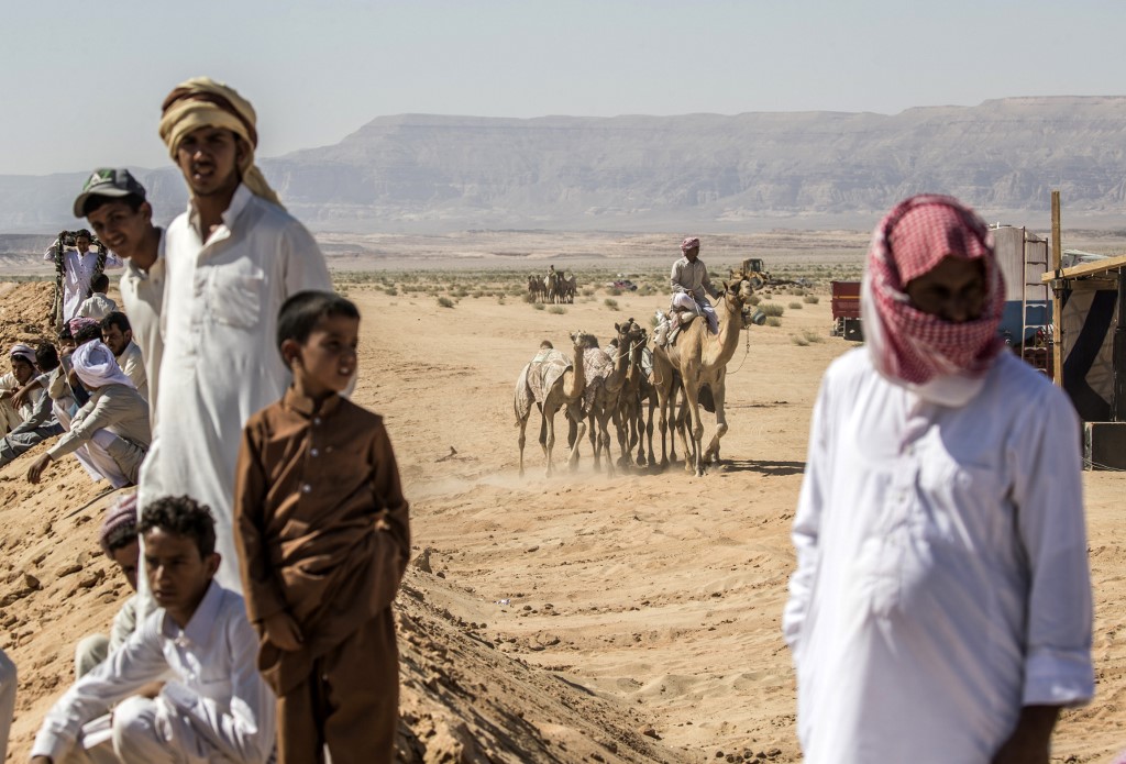 Bedouins watch a camel race in Egypt's South Sinai desert on September 12, 2020, after more than six month of hiatus due to the coronavirus outbreak. KHALED DESOUKI / AFP