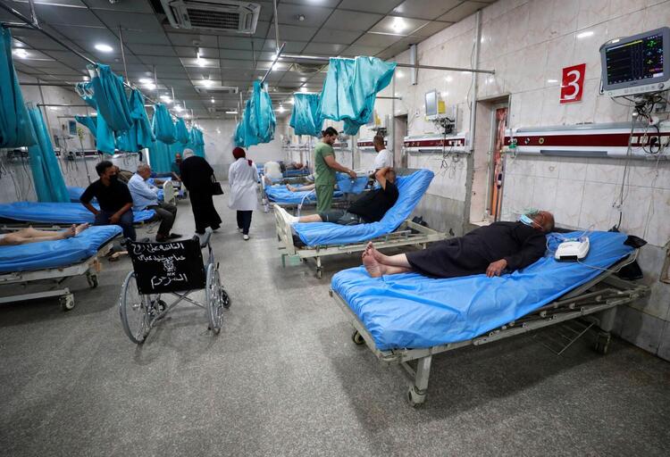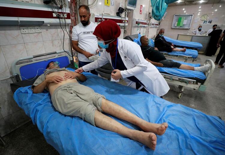 Iraqis receive treatment at an emergency ward in Sheikh Zayed Hospital in Baghdad as thousands were hospitalized across the country during a heavy sandstorm on May 6, 2022. Iraq is yet again covered in a thick sheet of orange as it suffers the latest in a series of dust storms that have become increasingly common. (Photo by AHMAD AL-RUBAYE / AFP)