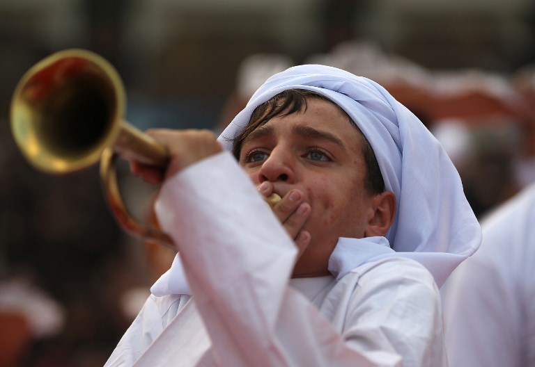 The rituals mark the holy Day of Ashura, when Shiite Muslims remember the death of Imam Hussein. The commemoration falls in Muharram, the first month of the Islamic calendar.