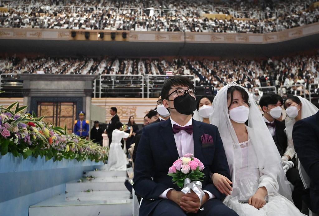 Thousands of couples -- some in facemasks -- tied the knot in a mass Unification Church wedding Friday, despite concerns in South Korea over the spread of the coronavirus outbreak.