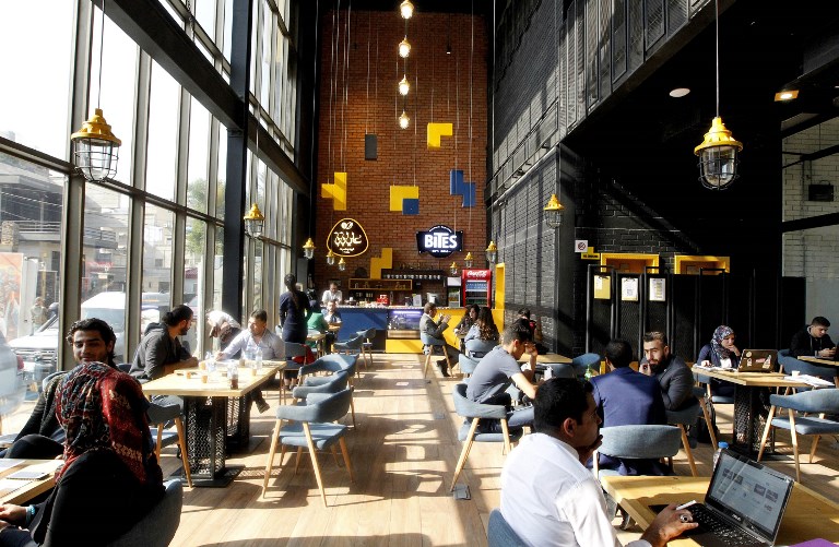 At The Station, Iraqis can sip coffee, peruse floor-to-ceiling bookshelves for ideas and grab a seat at the clusters of desks where other stylish Iraqis click away at their laptops.