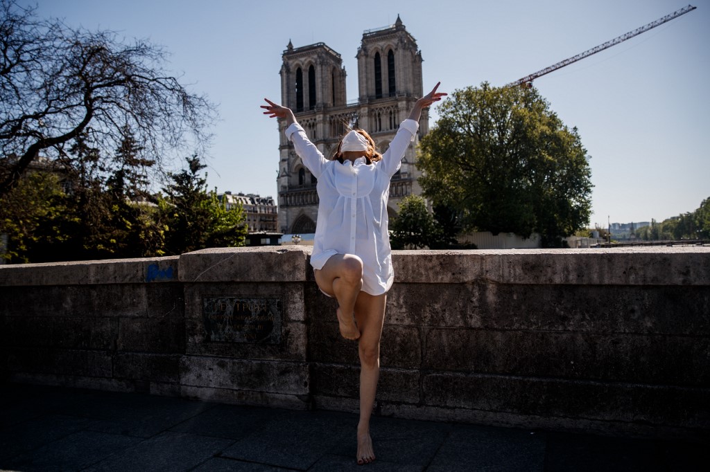 But there wasn't a soul in sight as she performed a series of spectacular ballet moves in front of the deserted grand monuments of Paris for AFP.