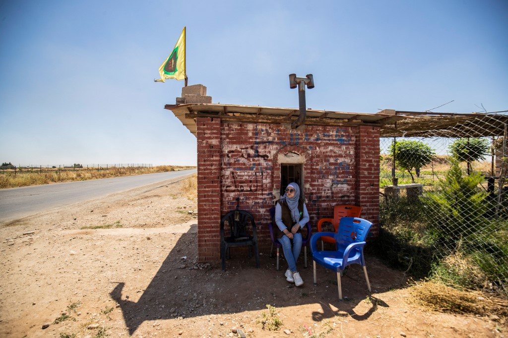 A Kurdish female volunteer, from the newly formed Community Protection Forces, guards a wheat field, against threats by jihadists to burn the crops, during harvest season on June 13, 2020, in the countryside east of Qamishli in Syria's northeastern Hasakah province. Delil SOULEIMAN / AFP