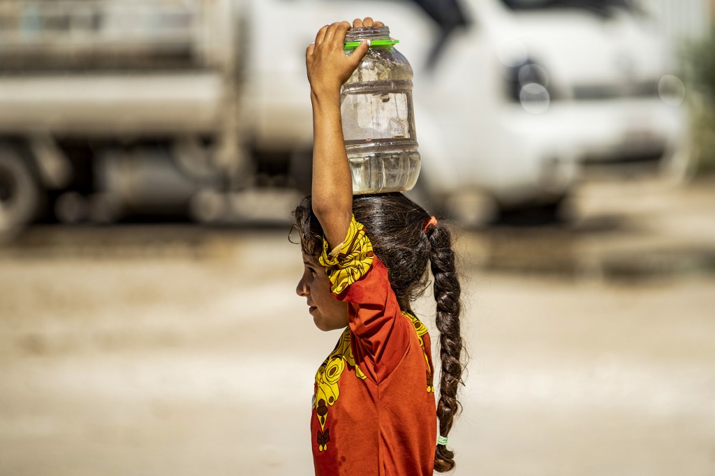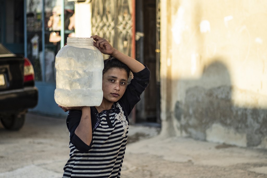 In the city's narrow streets, women and children clutched empty jerrycans, waiting to fill them up from water deliveries, some from aid groups.