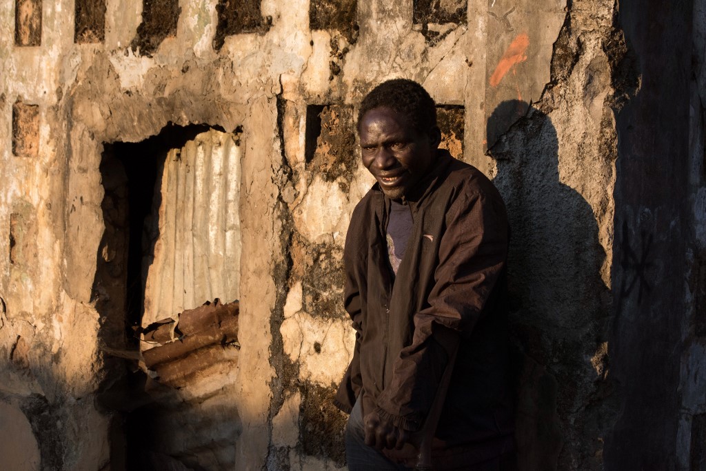Domingo Tomas, a former soldier with the Angolan Army and now part of a group of homeless people living in a building damaged during the Angolan civil war. RODGER BOSCH / AFP