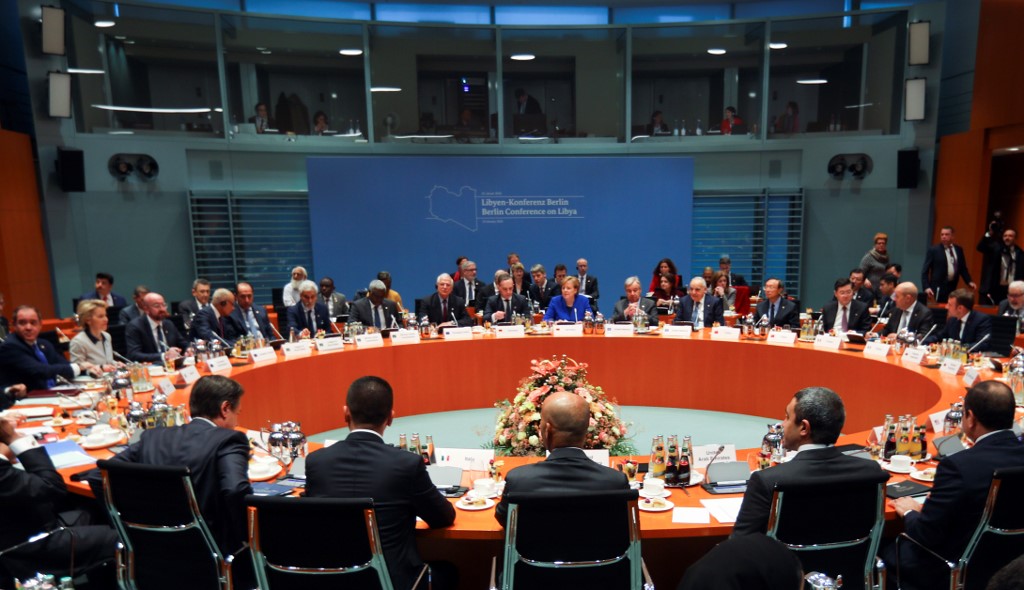 A general view shows participants attending the Peace summit on Libya at the Chancellery in Berlin on January 19, 2020. World leaders gather in Berlin on January 19, 2020 to make a fresh push for peace in Libya, in a desperate bid to stop the conflict-wracked nation from turning into a "second Syria". AFP