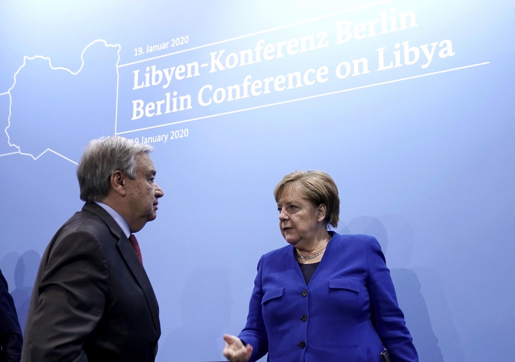 World leaders gather in Berlin on January 19, 2020 to make a fresh push for peace in Libya, in a desperate bid to stop the conflict-wracked nation from turning into a "second Syria". Chancellor Angela Merkel will be joined by the presidents of Russia, Turkey and France and other world leaders for talks held under the auspices of the United Nations.  Tobias SCHWARZ / AFP