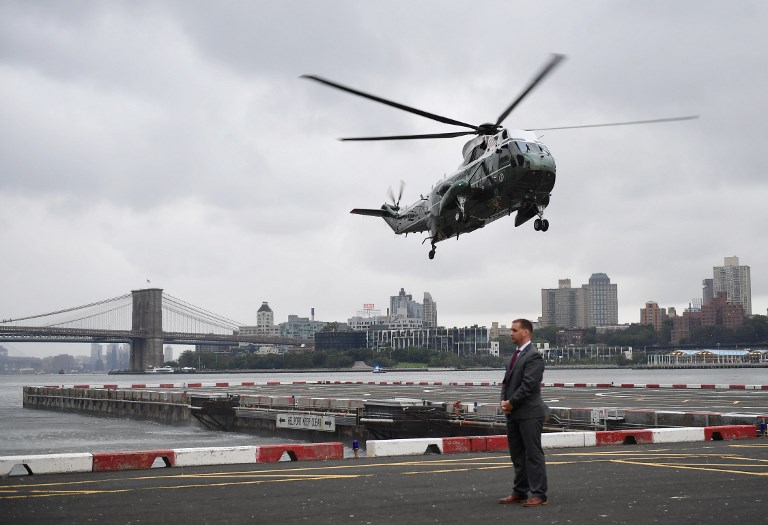 Marine One, carrying US President Donald Trump, lands in lower Manhattan in New York on September 23, 2018. Trump is in New York for the UN General Assembly. MANDEL NGAN / AFP