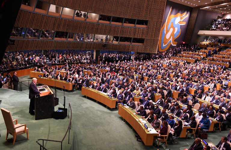 US President Donald Trump addresses the 73rd session of the General Assembly at the United Nations in New York September 25, 2018. Don EMMERT / AFP