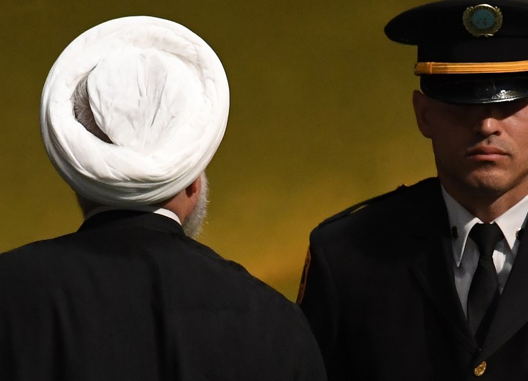 Iranian President Hassan Rouhani departs after addressing the General Debate of the 73rd session of the General Assembly at the United Nations in New York September 25, 2018. TIMOTHY A. CLARY / AFP