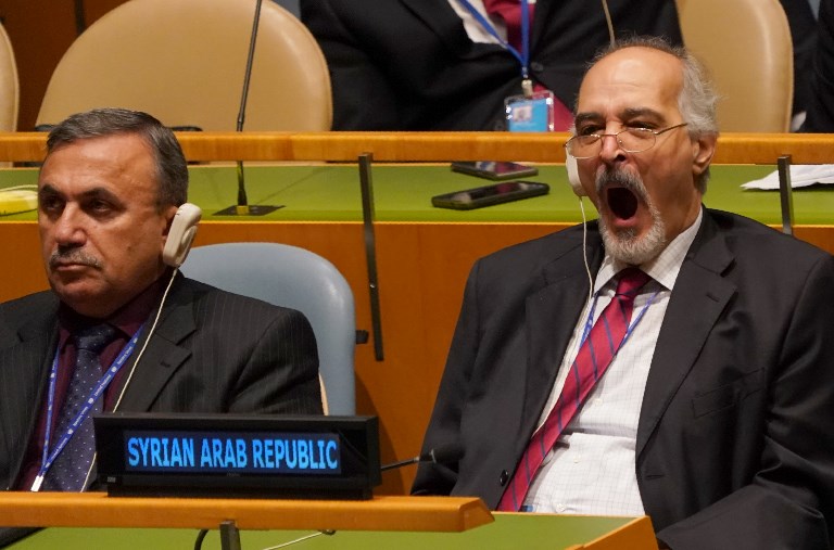 Syrian Ambassador to the UN Bashar Jaafari yawns as he attends the General Debate of the 73rd session of the General Assembly at the United Nations on September 25, 2018 in New York. Don EMMERT / AFP