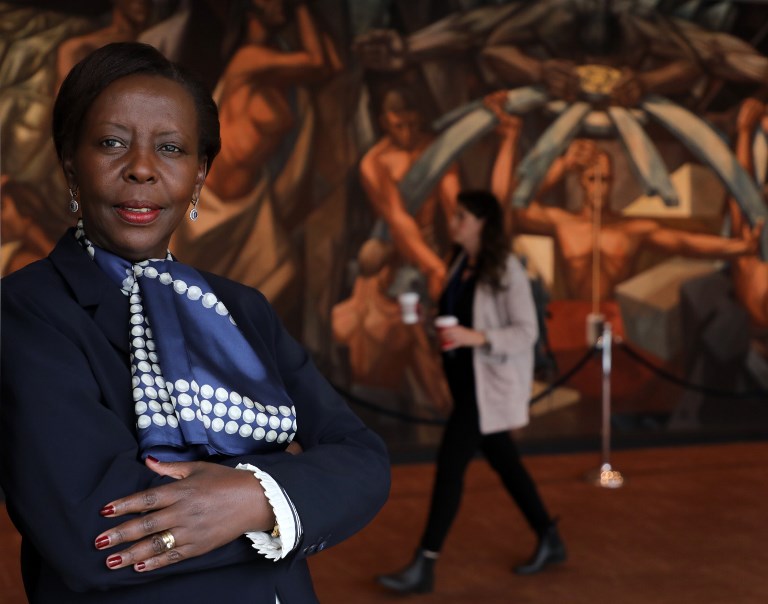 Rwanda Foreign Affairs Minister, Louise Mushikiwabo, who is running for Secretary General of the International Organisation of La Francophonie (OIF), poses for pictures onj the sidelines of the UN General Assembly, September 25, 2018 in New York.
