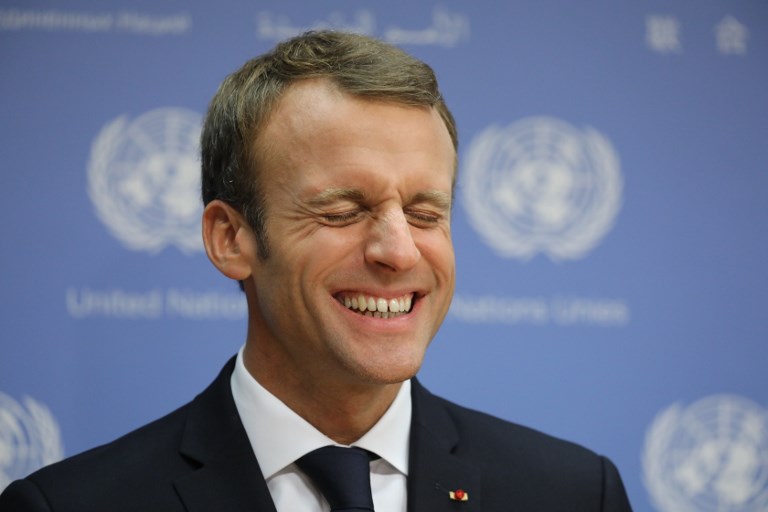 French President Emmanuel Macron speaks to the press during the annual general assembly at the United Nations headquarters in New York City on September 25, 2018. Ludovic MARIN / AFP