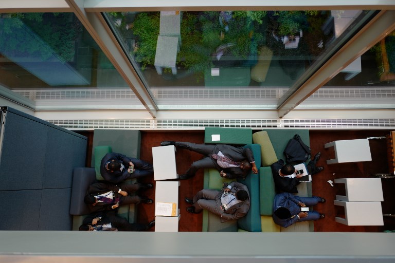 Journalists work in the corridors of the United Nations headquarters in New York City on September 25, 2018 during the annual general assembly. Ludovic MARIN / AFP