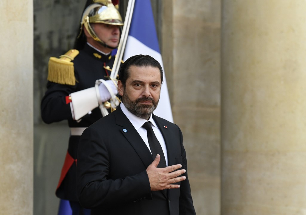 Lebanon's Prime Minister Saad Hariri gestures as he leaves The Elysee Presidential Palace in Paris on September 30, 2019, following a luncheon after a church service for former French President Jacques Chirac. Former French President Jacques Chirac died on September 26, 2019 at the age of 86. Bertrand GUAY / AFP