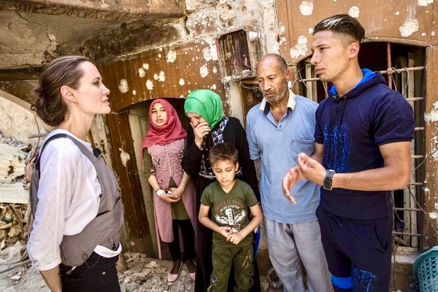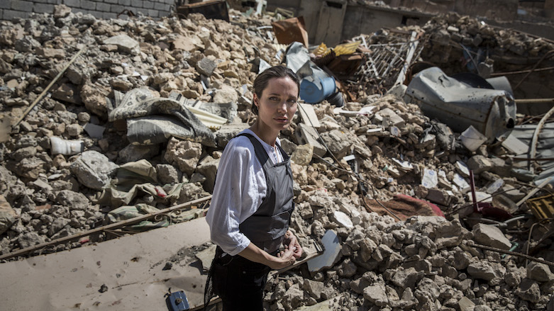 Actress Angelina Jolie walked around West Mosul to see the devastation, less than one year after the city was liberated from ISIS. (almasdarnews.com)