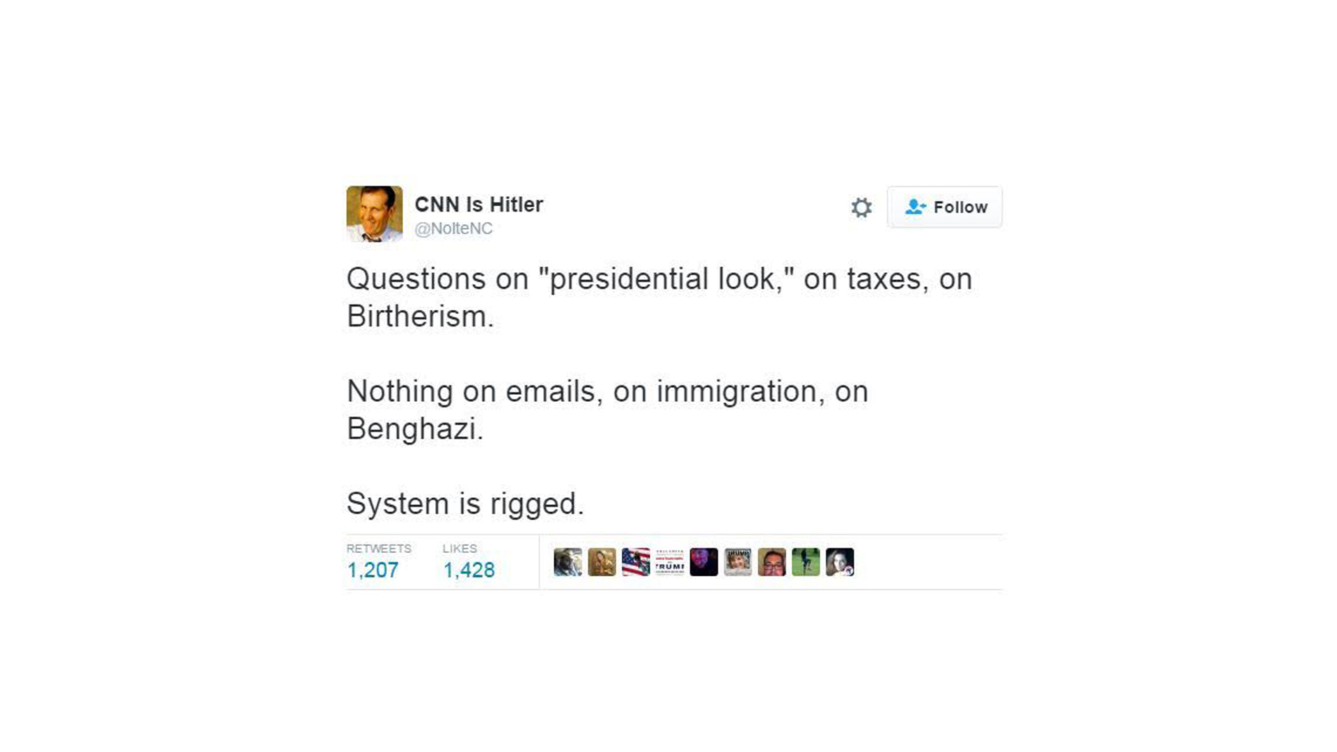 Few can resist a digital soapbox! Former Democratic presidential contender Bernie Sanders put in a word, "Absolutely disgraceful #debate." His tweet was retweeted by fan who really "felt the Bern", adding "It is beyond disgraceful!"