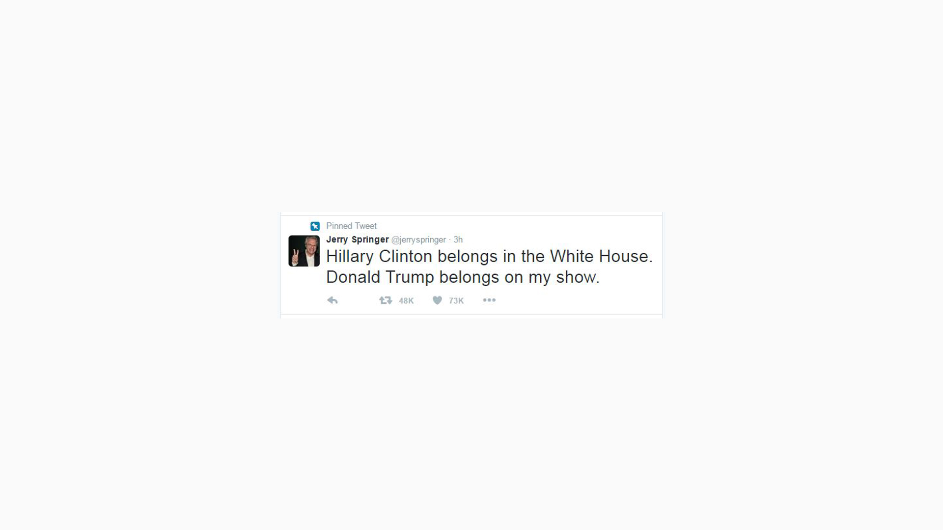 Stars joined the fray, with an occasional celebrity weighing in. The original "shock TV" host (and former Cincinnati mayor) Jerry Springer thinks the Art of The Dealster would make a great guest on his show. Springer specializes in interviewing emotional and erratic "real" Americans.