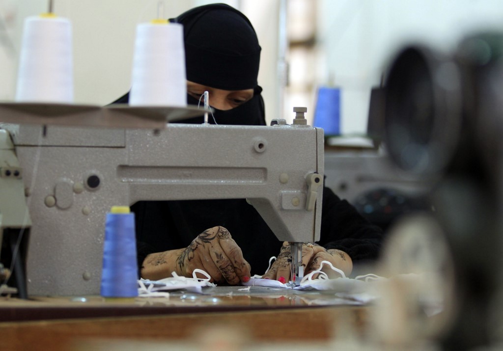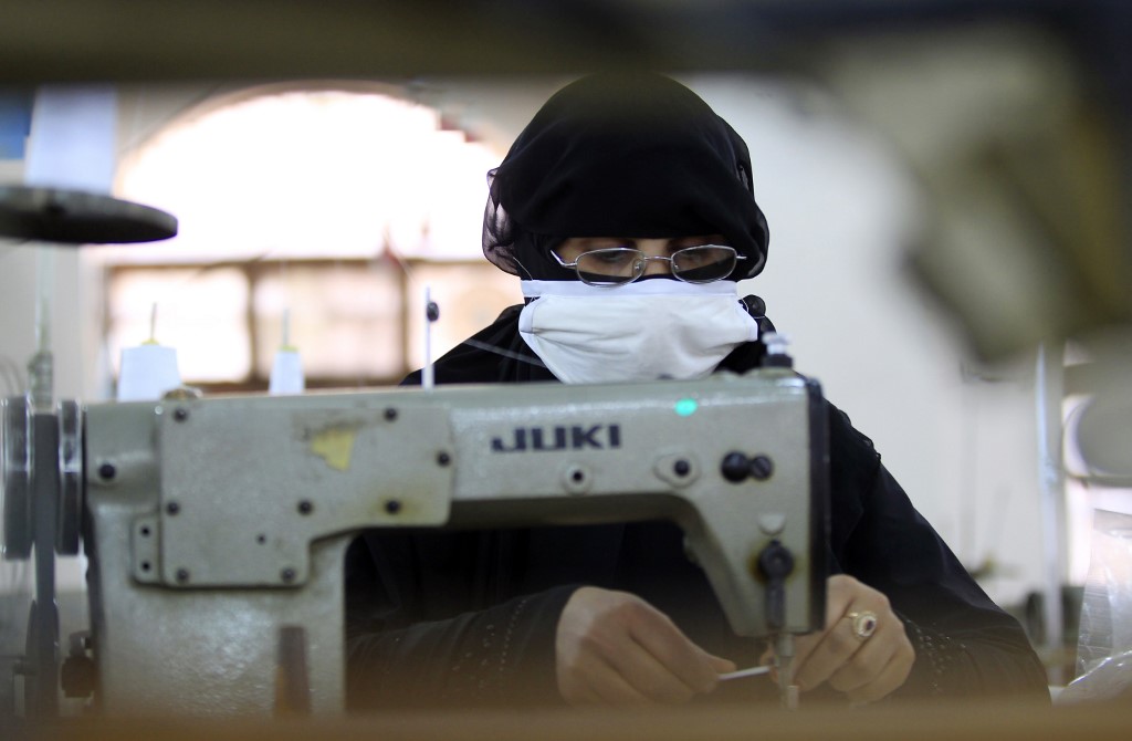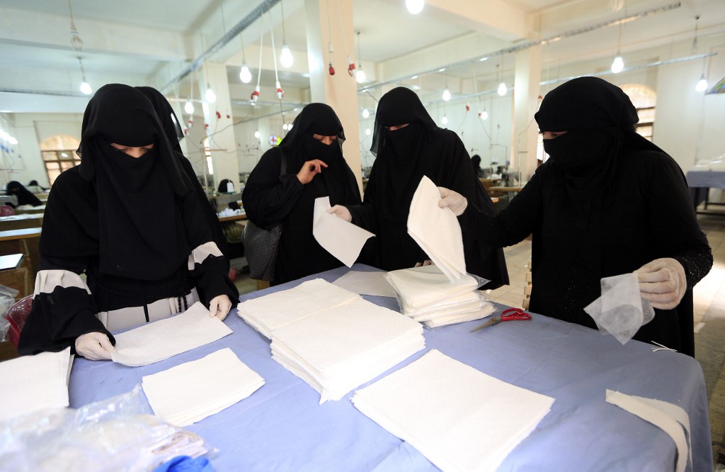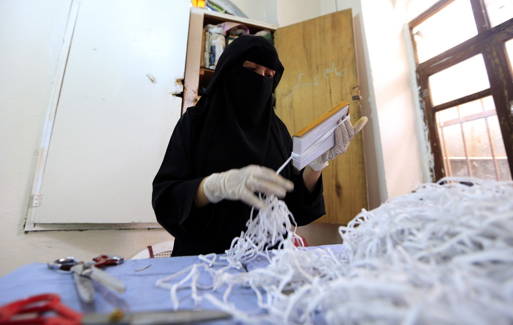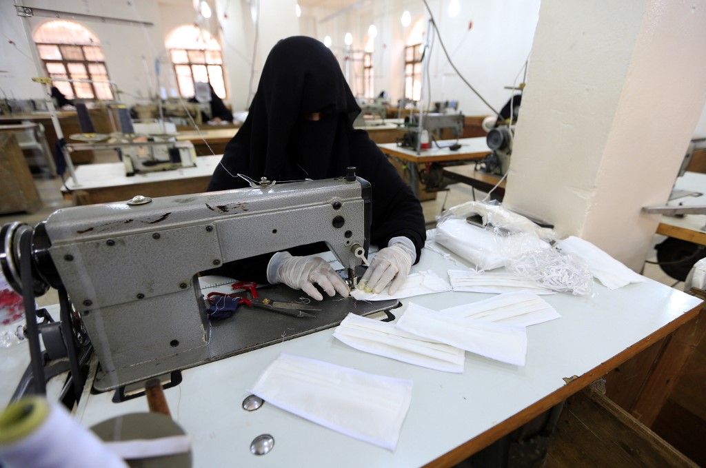 In the factory in the capital Sanaa, rows of desks line a cavernous hall with women in black niqab and white gloves hunched over sewing machines meticulously assembling medical masks, AFP reported.