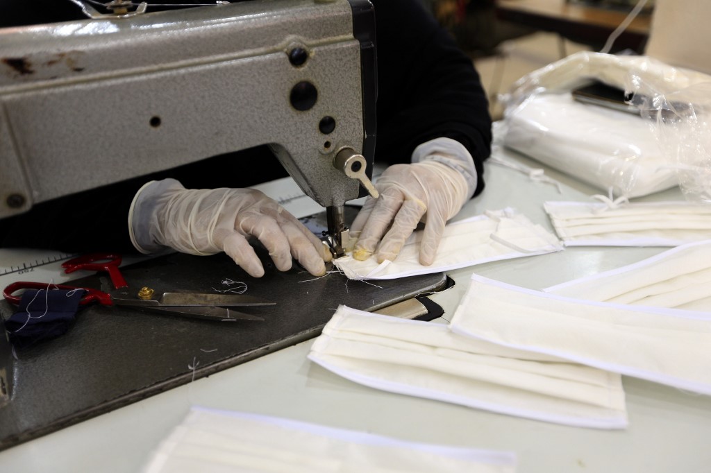 Yemeni women make face masks at a textile factory in the capital Sanaa on March 16, 2020. More than a decade after it shut down, 20 women have brought back to life Yemen's oldest industrial factory to manufacture what could save many lives amid a global pandemic: masks. Mohammed HUWAIS / AFP