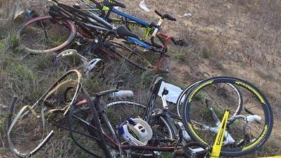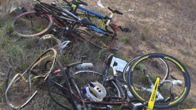Five professional cyclists were run over in a horrific accident that left three of them severely injured.