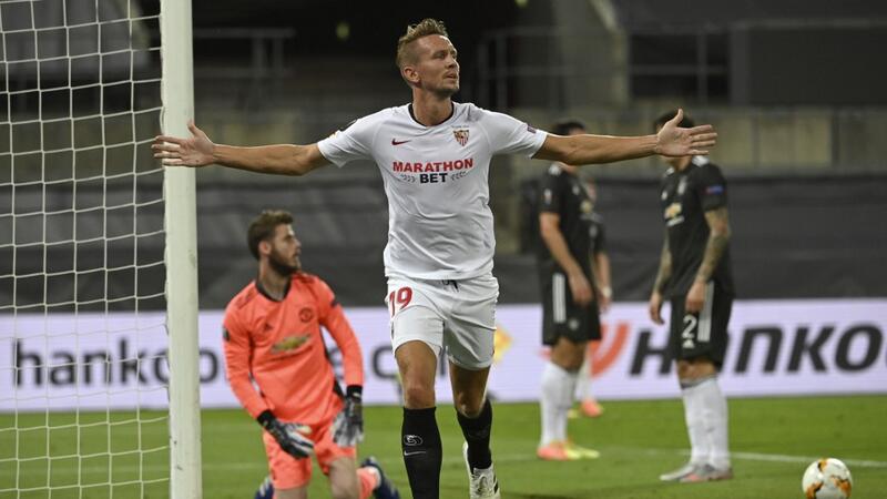 Luuk De Jong celebrates scoring during the UEFA Europa League semi-final football match Sevilla v Manchester United on August 16, 2020 in Cologne, western Germany.