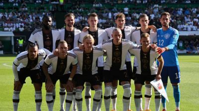 Germany's players pose for a team photo prior to the International friendly football match between Germany and Ukraine, in Bremen, northern Germany on June 12, 2023. (Photo by Focke Strangmann / AFP)
